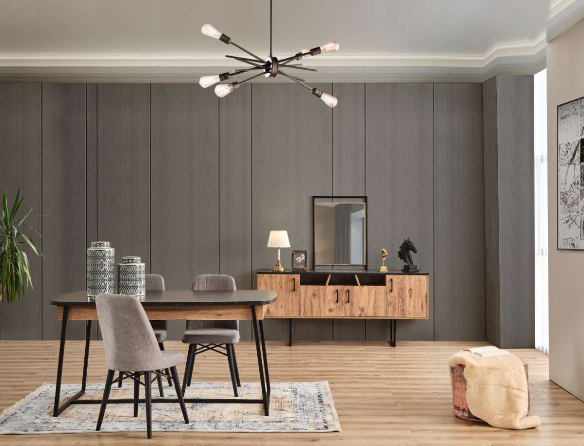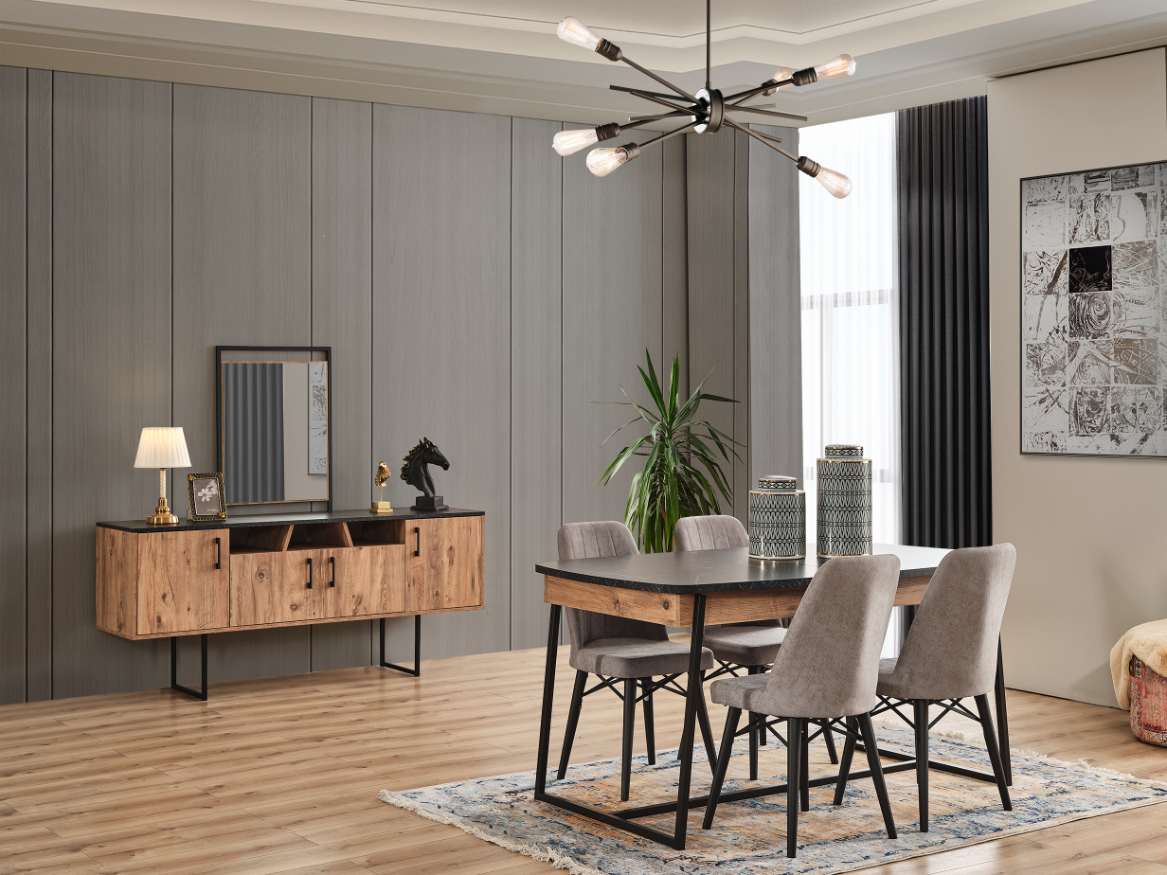 Yemek Odası Modelleri Takım İçeriği | Venus Yemek Odası Takımları Ürün 1 masa, 6 sandalye, 1 aynalı konsol, 1 TV ünitesinden oluşup her ürün opsiyoneldir |